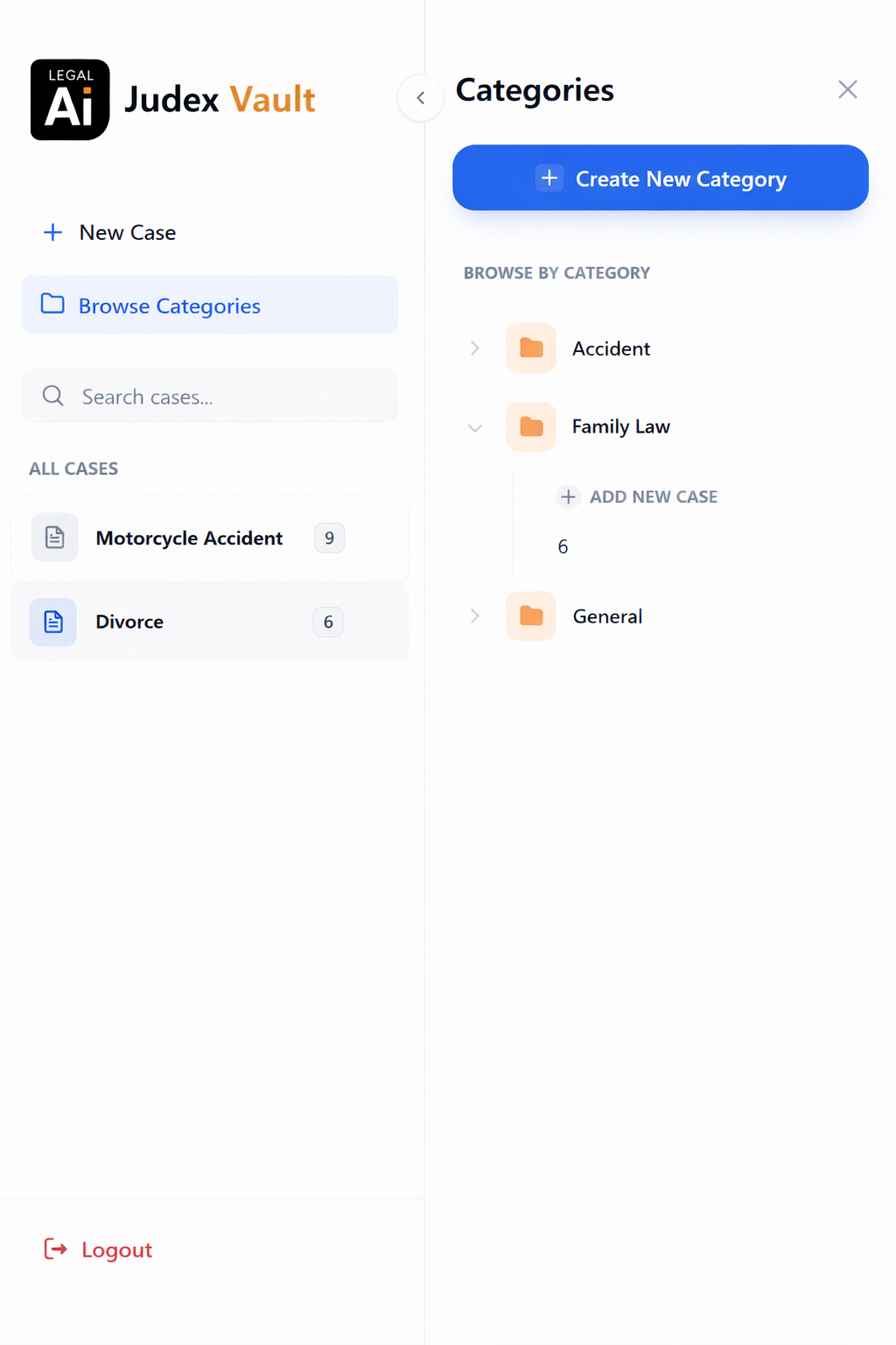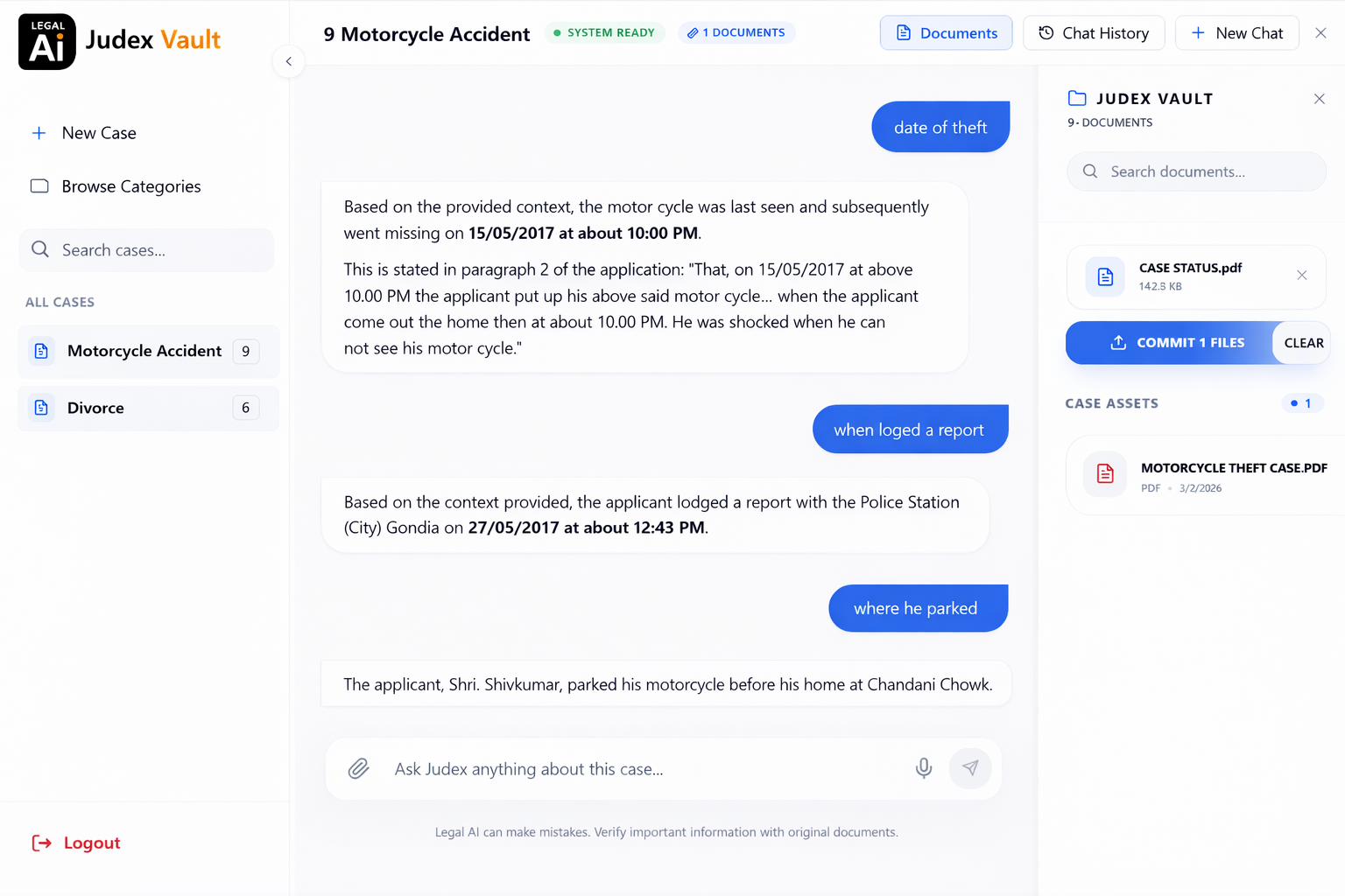 Judex Vault is a secure and intelligent legal repository developed by Durwankur AI, designed exclusively for modern legal professionals. It transforms scattered case documents into a structured, searchable, and interactive workspace.